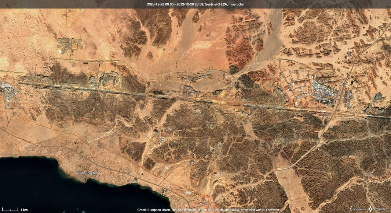 Супутники космічної програми Copernicus Європейського космічного агентства (ESA) наприкінці грудня минулого року сфотографували будівництво горизонтального хмарочоса протяжністю 170 кілометрів у Саудівській Аравії.
