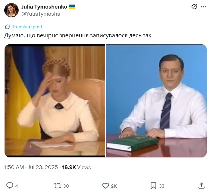 Пізніше вийшло нічне звернення президента, яке викликало нову хвилю жартів. Українці підозрювали, що текст звернення могли писати поспіхом або навіть за участі штучного інтелекту. Попри офіційні заяви про збереження незалежності НАБУ і САП, суспільство продовжує реагувати на події з тривогою та чорним гумором.