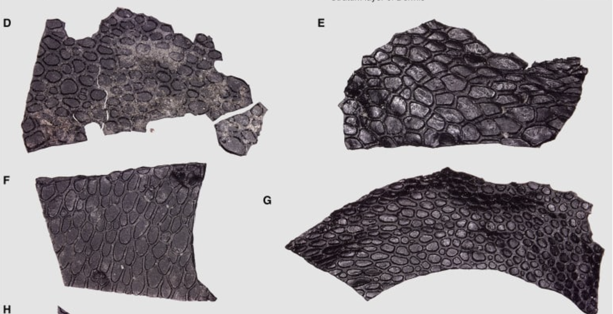 Точно визначити, якому виду належать дорогоцінні шматочки шкіри, неможливо. Однак там же знайшли інші зразки – шкірні лусочки (частина глибших епідермальних тканин) і рештки скелета тварини, на хребцях якої збереглися кілька крихітних смужок, теж схожих на ороговілі залишки епідермісу.