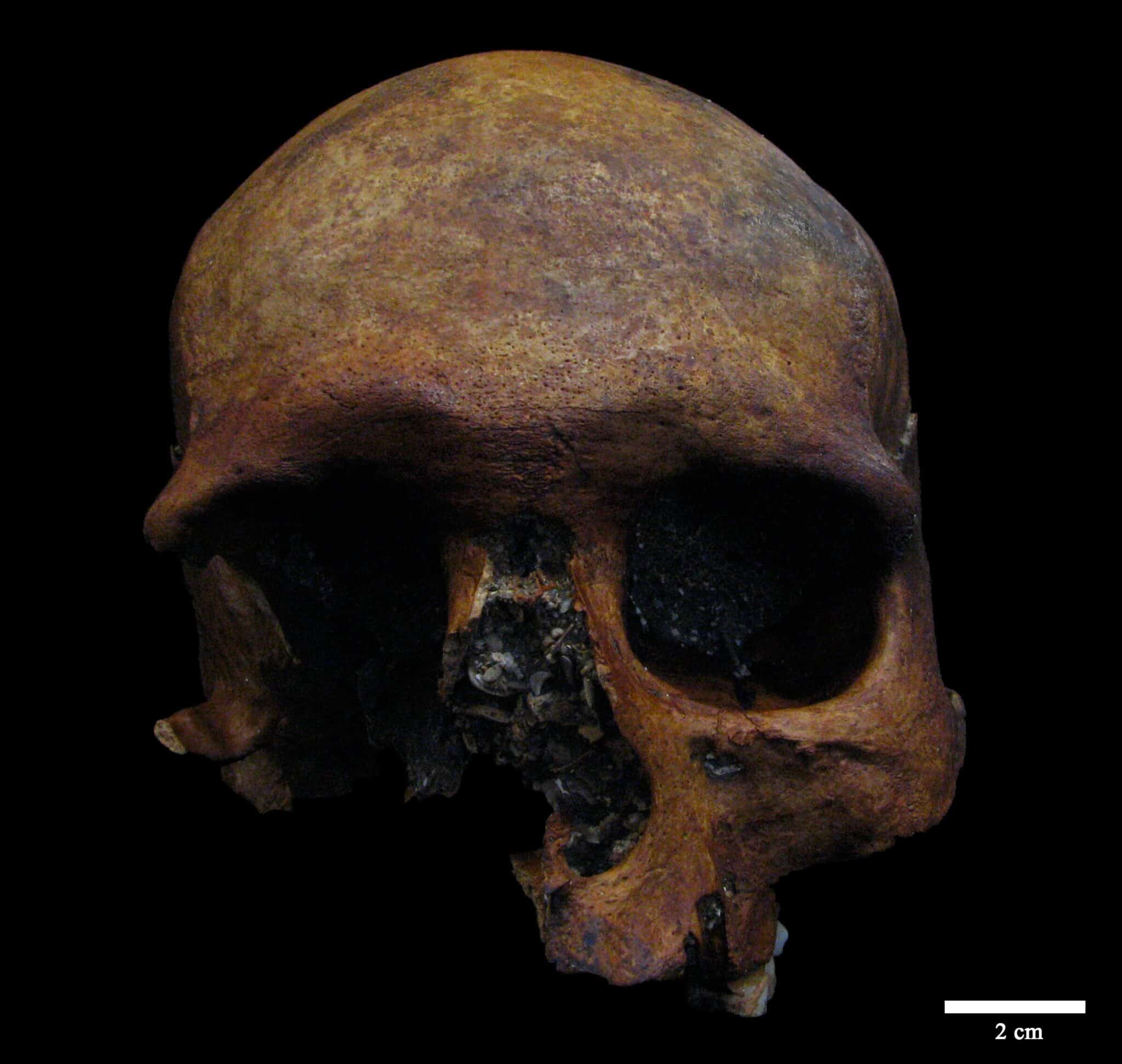 Потім дослідники провели комп’ютерну томографію, створили 3D-модель черепа, а також візуалізували його внутрішні структури. Так їм вдалося виявити чотири ушкодження, три з яких були екзокраніальними – на зовнішній стороні кісткового каркаса голови. Оскільки сліди розташовувалися на маківці, найімовірніше, травми були заподіяні навмисне, тупими та гострими предметами, за життя людини, а згодом поранення зажили.